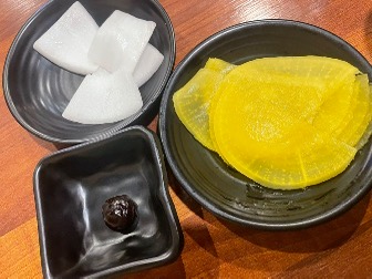 기다리는 동안 단무지, 양파와 같은 기본 찬들이 나와