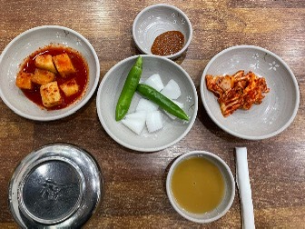 깍뚜기, 겉걸이, 고추&양파 를 기본 찬으로 주시는데