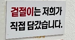 역시나 벽면에 빨간글씨로 “겉절이는 저희가 직접 담갔습니다”라는